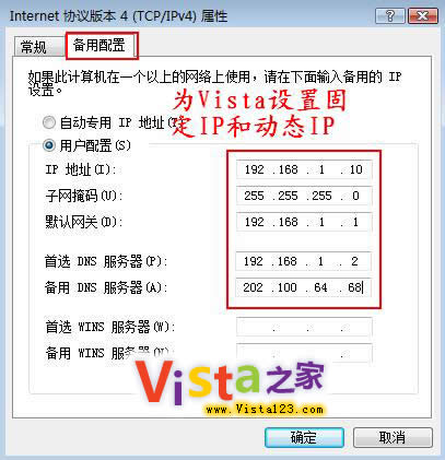 1、给Vista固定IP和动态IP(DHCP)的双保险