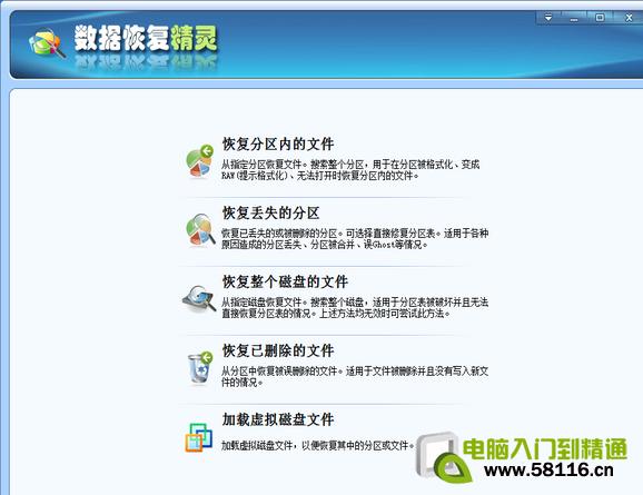 刚刚提到,重装系统操作会先将原来的系统分区进行格式化操作,因此,使用数据恢复精灵软件的“恢复分区内的文件”这个功能可以将丢失的文件找回。软件会对数据存储区域进行深入扫描,将被格式化的文件进行分析整合,进而将丢失的文件重现出来。