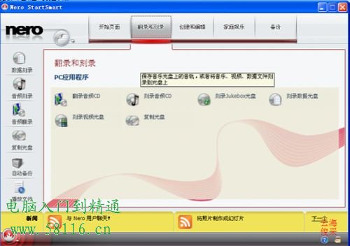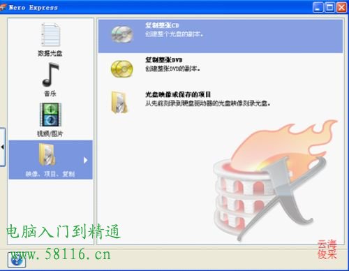 Nero 9 最常的功能就是这个,用来烧录一些系统盘,下面我将根据我以前的实践,尽量详细的作出讲解。 你必须确定你有一个刻录机,现在用的电脑自带的都是DVD刻,组装的就要注意了