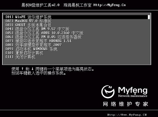 1, 下载免费的“晨枫U盘维护工具V2.0”。该工具分为“512M版”和“128M版”两个版本,“512M版”的WinPE集成了更多工具,适用用512MB以上的U盘,现在大容量的U盘都很便易,建议大家下载该版本。