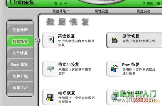 1.启动EasyRecovery Professional 进入软件主界面,选择数据修复项会出现如图的界面大家可以根据自己的需要来选择应用。