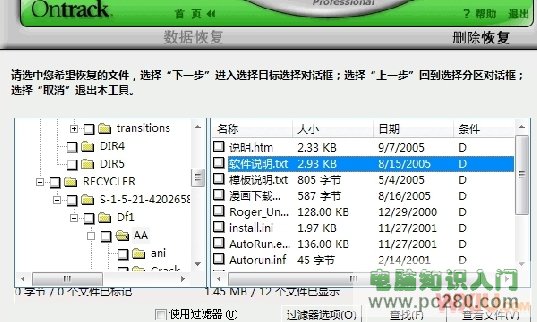 2.在右侧选择任何一种数据修复方式都会出现相应的用法提示,如我使用(删除恢复)项来查找并恢复已删除的文件时,就会在界面右侧出现相应的使用提示。