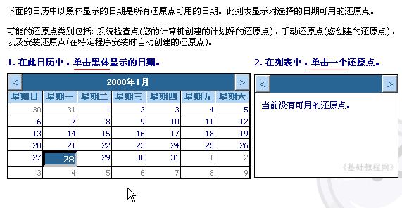 ![]() 3)在出来的恢复点选择中,选择一个较早的粗黑日期,点击选中,然后点“下一步”按钮;