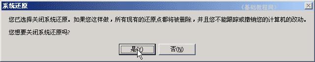 ![]() 4)在出来的提示里点“是”即可关闭系统还原了;