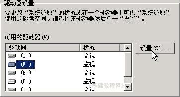 ![]() 5)如果想关闭其中的某一个驱动器,可以先选中这个磁盘,然后点右边的“设置”按钮;