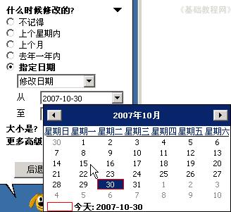 ![]() 2)按时间搜索,在下面的时间选项中可以设定时间范围, 点击第一个“什么时候”右边的黑三角按钮,然后在里面选择指定日期;