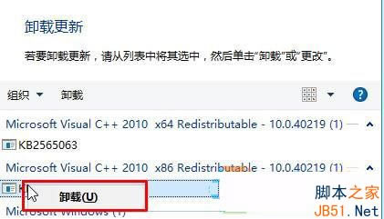4、在“卸载更新”界面中找到需要卸载的补丁,在上面单击鼠标右键,点击“卸载”即可。