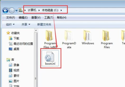 3、将新建的boot.ini文件复制粘贴到系统盘根目录下,即c盘中即可。