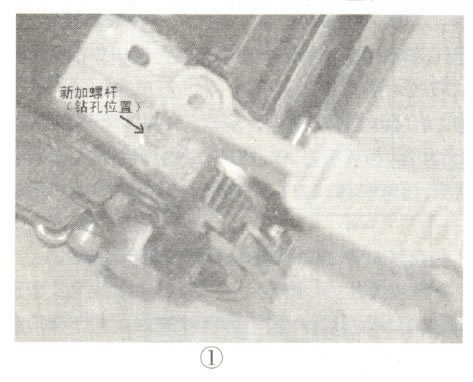 经此维修后,拉手与墨盒结合的机械强度足够,且不影响机器正常工作,经一个多月使用,效果很好,写出来供同行参考。图1中新加螺钉位置就是要钻孔的位置。