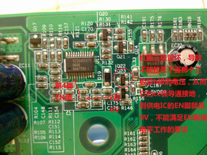 回到上面找到的en脚问题点,原来就是一个三极管坏了,见下图: