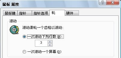 3、之后我们即可打开鼠标属性设置了,我们切换到滑轮设置,即可进行鼠标进行滚动了;