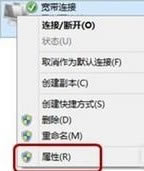 第三步,找到“宽带连接”,右键点击选择“属性”