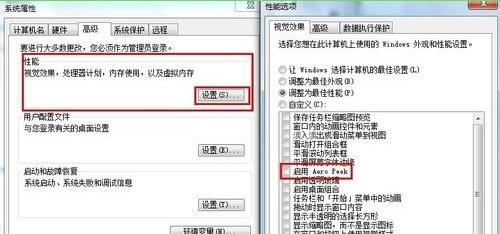 2、把 aero peek 的勾勾去掉,保存即可,如图:
