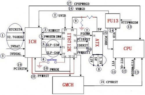 时序:就是按照一定的时间顺序给出信号,就能得到你想要的数据,或者想要写的数据写进芯片。而上电时序是指主板在开机过程中电压及信号先后开启的顺序。上电时序反映的是主板工作的内在规律,是区分故障部位的重要手段,是使维修工作事半功倍的前提。
