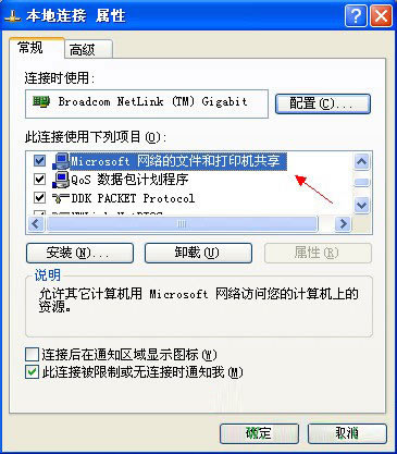 网上邻居→本地连接→属性里,检查是否安装了“microsoft网络的文件和打印机共享”。