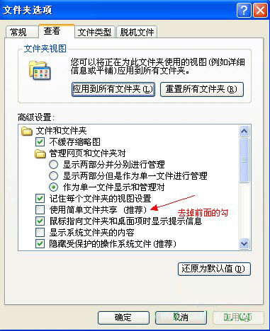 我的电脑→工具→文件夹选项→查看→去掉“使用简单文件共享(推荐)”前的勾。