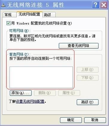 1、进入无线网络连接属性,并在首选网络中删除所有的无线网络配置,具体设置如下: