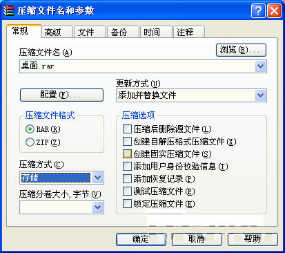 步骤1,首先选中需要合并的多个txt文档,然后单击鼠标右键,在弹出的菜单中选中“win-rar—添加到压缩文件”命令,这时会出现“压缩文件名和参数”窗口,在“常规”标签页中对压缩文件进行命名,并将“压缩方式”下拉框中的“存储”一项选中,点击“确定”按钮退出;