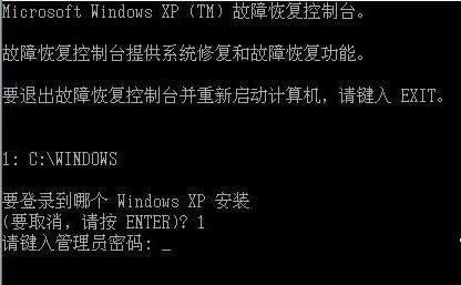 然后“恢复控制台”会自动扫描硬盘上安装的windows系统并出现选择列表,只装了一个windows的直接按“1”再回车,接着再输入管理员密码,“enter”后便登录了系统。