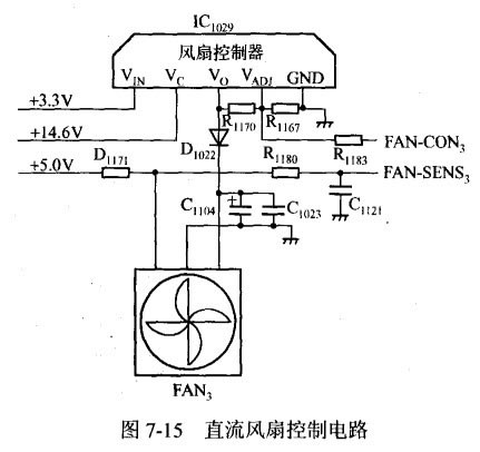 投影机中所用风扇基本都是直流风扇,但它们不同于普通的风扇,每只风扇除了有输入的电源线和地线外,还有一条信号线,负责输出风扇的运行状态信号,此信号代表了风扇的转速,主板上的cpu通过检测这一信号就可以探知风扇的运转情况,还可以根据温度检测结果,调整风扇的转速,故障投影机维修完毕。有关的控制电路如图7-15所示。