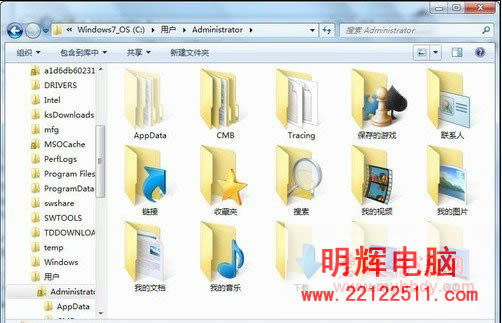 默认状态下,我的文档、我的图片、我的视频、我的音乐和下载这几个文件夹都保存在此目录中。