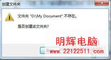 如果新设置的文件夹还没有创建,系统会弹出对话框提示我们,选择“是”。