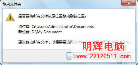 最后,系统还会提示我们“是否要将所有文件从原位置移动到新位置”,这里仍然选择“是”。