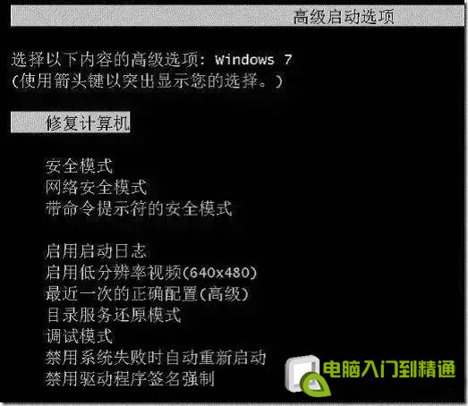 在电脑出现不太严重的问题的时候,我们经常说重新开机,连续按F8启动菜单选择安全模式或者最近一次正确配置,我们可以看到,其实除了最常用的安全模式,高级启动选项里还有网