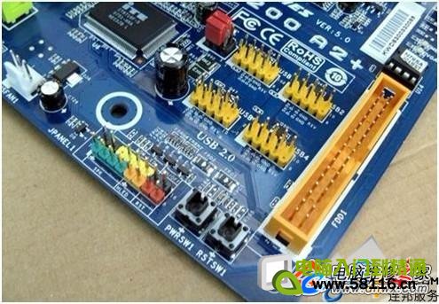 这款主板和上一张图的主板一样,都采用9Pin定义开关/复位/电源灯/硬灯9Pin的开关/复位/电源灯/硬盘灯跳线是目前最流行的一种方式,市场上70%以上的品牌都采用的是这种方式,慢慢的也就成了一种标准,特别是几大代工厂为通路厂商推出的主板,采用这种方式的更是高达90%以上。