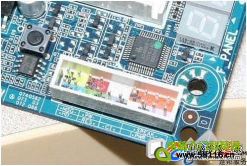 以上就是当前机箱中比较常见的几种接线,还有一些不太常见的,实际上,机箱上的接线很容易就能分辨清楚,但是对于主板上的跳线,要想做到心中有数就有点困难了。 下面我们再来了解一下主板针脚。首先来看开关/重启/LED灯针脚,这个针脚通常位于主板的右下角(主板装入机箱)旁边一般会有F_PANEL标示,主要负责Power开机、Reset重启等重要功能,目前绝大部分主板都采用了9pin的方式。 9pin