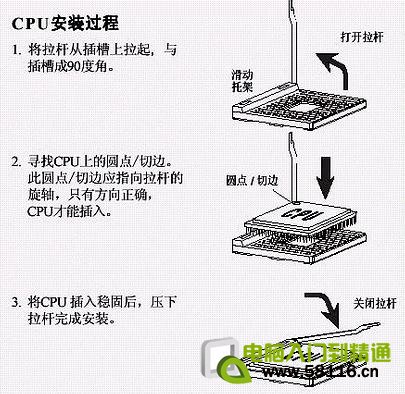 CPU的安装过程 大家在将主板装进机箱前最好先将CPU和内存安装好,以免将主板安装好后机箱内狭窄的空间影响CPU等的顺利安装。(见图1)