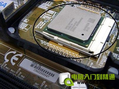 图1 第一步,稍向外/向上用力拉开CPU插座上的锁杆与插座呈90度角,以便让CPU能够插入处理器插座。 第二步,然后将CPU上针脚有缺针的部位对准插座上的缺口。 第三步,CPU只能够在方向正确时才能够被插入插座中,然后按下锁杆。(见图2-安装好后的CPU)