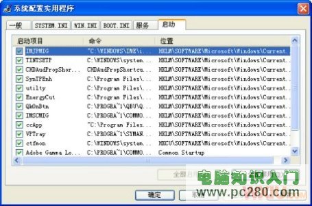 第一步:依次单击“开始”→“运行”,在打开的“运行”对话框中输入“msconfig”并单击“确定”按钮打开“系统配置实用程序”,在打开的对话框中单击“启动”标签,将不需要启动的程序前面的对勾去除选择,最后单击“确定”按钮即可(见图1)。