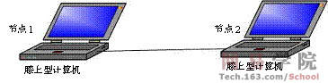 ![]() 对等网也常常被称做工作组。对等网络一般常采用星型网络拓扑结构,最简单的对等网络就是使用双绞线直接相连的两台计算机,如图1-6所示。在对等网络中,计算机的数量通常不会超过10台,网络结构相对比较简单。