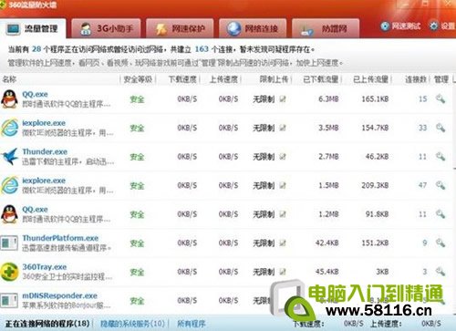 通过360流量防火墙的流量管理功能,我们看看哪些程序在后台偷偷蚕食用户宝贵的流量呢? PPS ,PPTV网络电视,在线视频,音乐播放,迅雷下载等等。 在360流量防火墙的工程师介绍,目