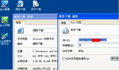 如上图,双击该文件,那款IE辅助工具无提示安装,同时桌面上释放“源码下载”,“软件下载”两个快捷方式,其中“软件下载”是指向该下载站。如果说这种建一个快捷方式宣传其站点是一种性质还比较“善良”广告,那我们接下来介绍的这类“软件”就比较凶狠了。