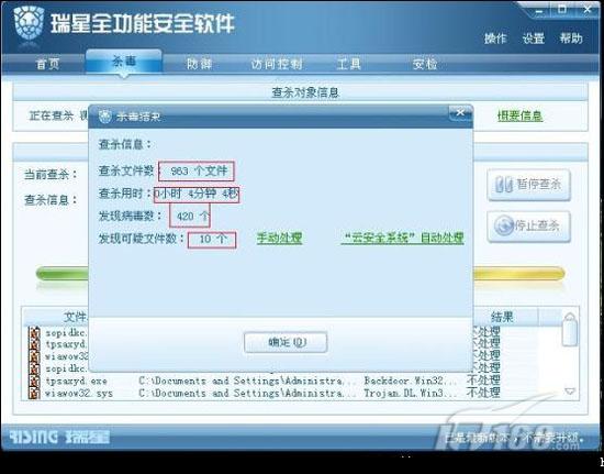2、基于瑞星“云安全”的启发式扫描,最大范围杀灭未知病毒