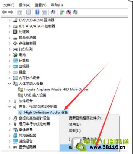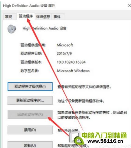 4、然后右键声音下面的设备,点击属性; ![]() 5、然后点击驱动程序,点击回退驱动程序; ![]()
