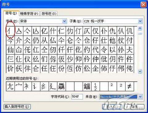 在WPS中有时我们要输入一个文字的偏旁部首,对某一汉字进行补充说明,这个偏旁部首看似简单,其实不然,输入整个汉字还行,可真要是输入某一汉字的偏旁或部首,用全拼的还好说,只要是输入“pian pang”就可输出所有的偏旁,可习惯用五笔的打起来有时还真一时反应不过来。这时我们也可以用插入符号的办法来解决,比如说要输入“偏”的偏旁部首“亻”时,同样是先选中“偏”,点击“插入—符号”,在打开的“符号”窗口右下方点击“来自M:”中的下拉箭头,选择“简体中文GB2312”,“偏”就会呈自动选中状态,此时再次点击右下方“来自M:”中的下拉箭头,选择“Unicode(十六进制)”,在“符号”窗口中由“偏”再向前翻,在所有含“偏”这个偏旁部首的字体与其它的偏旁部首字体交界处,就是“偏”的偏旁“亻”(如图05),然后点击“插入”,这时我们在WPS文字中选中的“偏”字也就自动替换成“亻”了。