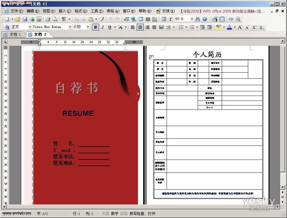 找工作更加轻松 用WPS2009在线模板制作个人简历